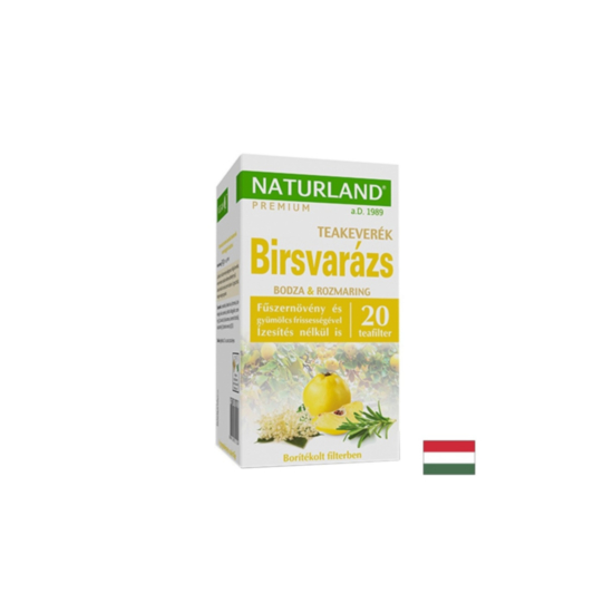 Съставки: Ябълкови кюспета, хранителна киселина (лимонена киселина), шипка, сладки листа от къпина, печен корен от цикория, розмарин (5%), аромат от бъз 3% (аромат от бъз, концентрат от бъз), кюспе от бъз (1%), аромат на дюля (0,5%).
