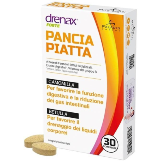 Хранителната добавка Drenax Forte Pancia Piatta на Paladin Pharma е иновативна природна формула, с която горенето на мазнини и поддържането на отлична фигура става по-лесно, ефективно и трайно. Тя подобрява редица биохимични процеси в тялото и така подпомага по естествен път оптимизирането на здравословното тегло. Продуктът съдържа мощни пробиотични щамове, жизнено важни за тялото витамини и органични билкови екстракти. В него няма следи от каквито и да е алергени, ГМО, синтетични или вредни вещества като стимуланти, стероиди и хормони.