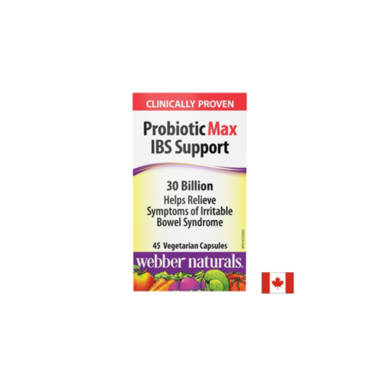 Пробиотик Max IBS Support е високоефективна формула на канадската компания Webber Naturals, която допринася за доброто функциониране на стомашно-чревния тракт и нормалното състояние на чревната микрофлора. Осигурява целенасочена подкрепа за облекчаване на синдрома на раздразнените черва (IBS).