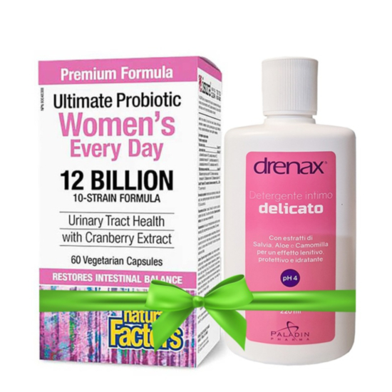 МУЛТИ ПРОБИОТИК ЗА ЖЕНИ 12 млрд. активни пробиотици с добавена червена боровинка на канадската компания Natural Factors е първокласен пробиотик с 10 щама за цялостна грижа за здравословна микрофлора на влагалището, активна защита на пикочните пътища, подкрепа на естествения имунитет и добро храносмилане, само в една капсула.