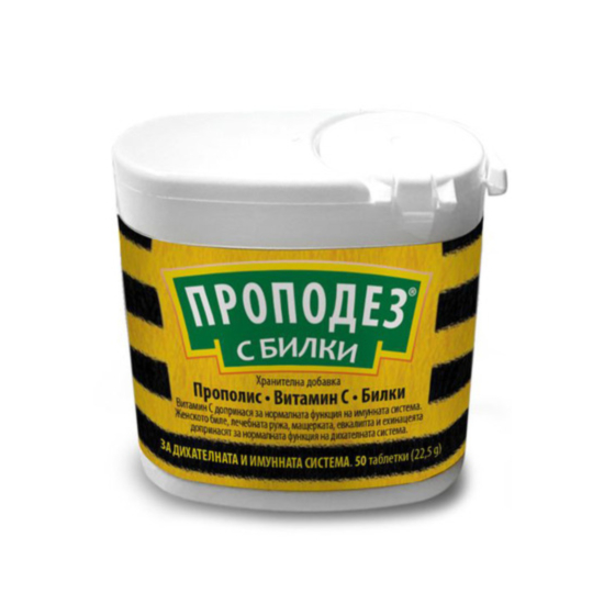 Проподез с билки е хранителна добавка под формата на таблетки за смучене, която допринася за нормалната функция на имунната и дихателната система.