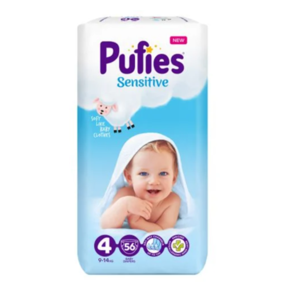 Pufies Sensitive са изключително меки пелени за бебета и малки деца.Те осигуряват на нежната бебешка кожа винаги да бъде суха и защитена. Пелените са с анатомична форма, която следва всяко движение на вашето бебе, за да може да се чувства комфортно без значение дали спи, играе или изследва света около себе си. Пелените са създадени от дишаща материя, която пропуска свежия въздух в пелената и отвежда влажния навън, предпазвайки кожата от зачервяване и подсичане.
