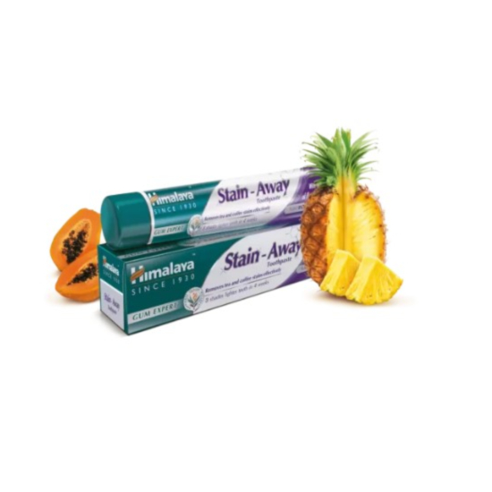 ПЗ ХИМАЛАЯ СТЕЙН ОУЕЙ 75 МЛ. - Билкова формула, създадена на базата на растителни ензими от папая и ананас, които избелват зъбите и ефективно премахват петната от кафе и чай по тях. Три тона по светли зъби за 4 седмици.