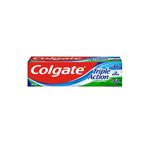 КОЛГЕЙТ ПЗ ТРИПЪЛ ЕКШЪН 100 МЛ * е паста за зъби за цялото семейство с тройно действие: защита от кариес, бели зъби и свеж дъх. Тя предпазва зъбите от бактерии, отстранява петната по повърхността и освежава дъха. Предлага се в опаковка от 100мл.