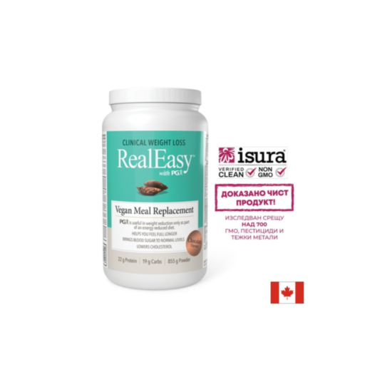 Real Easy™ with PGX® Vegan Meal Replacement Chocolate Flavour на канадската компания Natural Factors е естествен начин за поддържане на нормално тегло и чувство за ситост.