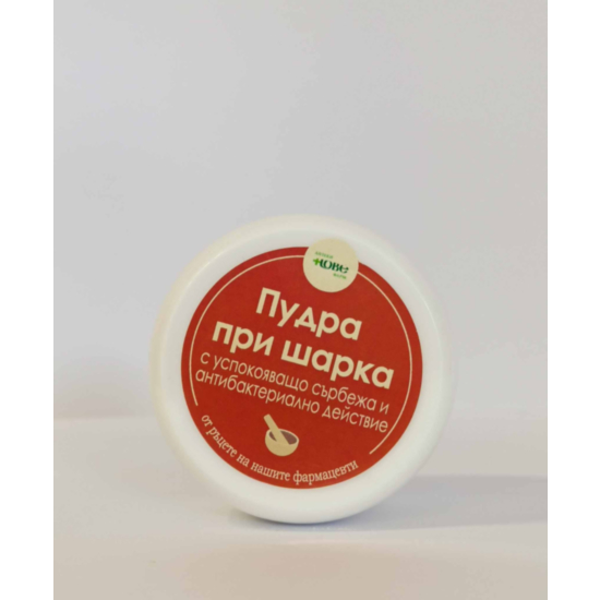 Пудрата при шарка от Нове Фарм има охлаждащо, обезболяващо и антибактериално действие, което облекчава сърбежа, намалява възпалението и предотвратява инфекции върху засегнатите кожни участъци.