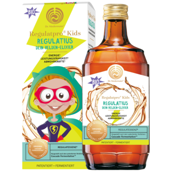 РегулатПро Кидс съдържа концентрираната мощ на РегулатПро Био и неговата Регулат Есенция (REGULATESSENZ®). Това е концентрирана есенция от патентованата каскадна ферментация, богата на олигопептиди и антиоксиданти.