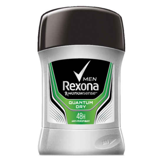 РЕКСОНА ДЕЗОДОРАНТ СТИК КВАНТУМ 50 МЛ Rexona Men Quantum Dry е део стик, специално създаден за мъже и предназначен за ежедневна употреба. Осигурява оптимална и дълготрайна защита от изпотяване и поява на неприятни миризми. Иновативната формула е богата на ценни омекотяващи съставки, които нежно подхранват деликатната кожа в зоната на подмишниците. Rexona Men Quantum Dry е разработен по специална технология MotionSense System с нежни микрокапсули, които се активират при всяко движение и отделят аромат. Деликатно се грижи за кожата, без да я изсушава.
