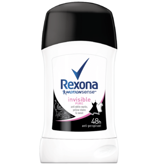 РЕКСОНА ДЕЗОДОРАНТ СТИК ИНВИЗИБЪЛ ПЮР 40 МЛ е део стик против изпотяване, специално създаден за жени. Той предотвратява появата на неприятни миризми и оставя чувство на свежест и чистота през целия ден. Не оставя следи и не предизвиква появата на жълти петна по дрехите. Има страхотен свеж аромат и е подходящ за ежедневна употреба. Нежен и деликатен към кожата и не предизвиква изсушаване.
