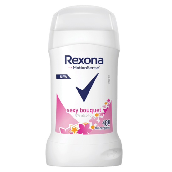 Rexona Motionsense Sexy Bouquet Anti-Perspirant 48h е део стик против изпотяване, който осигурява 48-часова защита от изпотяване и неприятни миризми. Подходящ за всеки тип кожа. Иновативната му формула хидратира кожата и осигурява оптимална защита със завладяващ аромат на букет от специално подбрани цветя. Употребата на дезодоранта гарантира надеждна грижа за приятни и сухи подмишници. Продуктът е с дерматологично доказана съвместимост с кожата, без съдържание на парабени и предназначен за ежедневна употреба.