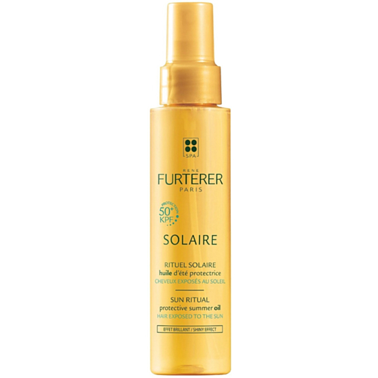 Защитно масло за коса, обогатено със сусамово масло, коетоефективно предпазва от вредните слънчеви лъчи, същевременно хидратира и подхранва косъма. Сусамовото масло с естествени слънцезащитни свойства е съчетано с UV филтър за оптимална защита на косъма с индекс KPF 50 (Keratin Protection Factor). Rene Furterer Sun Ritual Protective Summer Oil осигурява също и подхранване на косата, защитава я от изсушаване, предотвратява натрупването на сол и хлор. Маслото придава блясък и мокър ефект и е спривличащ слънчев аромат.