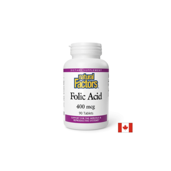 Folic Acid на канадската компания Natural Factors играе важна роля в предотвратяването на дефекти на невралната тръба, когато се приема преди зачеването и по време на ранна бременност. Спомага за производството на червени кръвни клетки и поддържането на добро здраве.