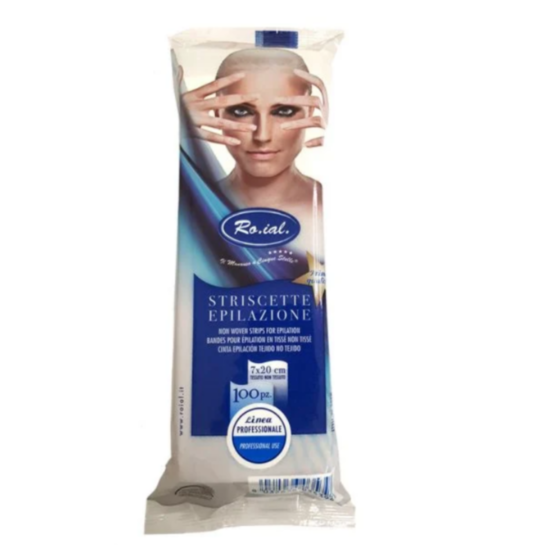 РОЯЛ ПРЕМИУМ ЛЕНТИ ЗА ДЕПИЛАЦИЯ Х 100 - Лентите за епилация Roial от нетъкан текстил с премиум качество, са предназначени за професионална употреба. Плътното им прилепяне към восъка осигурява премахване на косъма от корена и отличен дълготраен резултат за мека и гладка кожа. Подходящи за прилагане с всеки вид восък за епилация, както с водно разтворими варианти, така и с мастноразтворим восък в ролон пълнител или твърд восък в кутия или под формата на дискове и перли. Лентите са с размер 20см дължина и 7 см ширина в удобна опаковка от 100 броя. Лентите Roial са хипоалергични и притежават серификат Oeko-tex Standard 100. Една лента може да се използва няколкократно по време на епилацията.