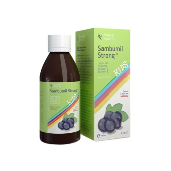 Самбумил Стронг сироп на компанията Doleran pharma е продукт, който е специално създаден за интензивно подпомагане на имунната защита на детето. Той може да се използва за профилатика, а при вече възникнало заболяване, облекчава симптомите. Sambumil Strong сироп е подходящ при вирусни, бактериални и гъбични инфекции. Той намалява честотата и съкращава периода на боледуване, предотвратявайки усложнения и рецидиви. Има положителният ефект върху имунната система, който се основава на съдържащите се в екстракта от плодове на черен бъз високоефективни естествени антиоксиданти. Съставът е обогатен с Витамин С, Витамин Е и Коластра за допълнително благоприятно повлияване на имунната система.