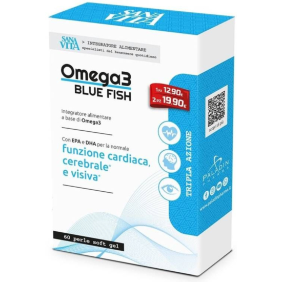 Sanavita Omega 3 Blue Fish на Paladin Pharma е хранителна добавка с екологично чист натурален състав. Тя предоставя максимална дневна доза от полезни мастни киселини тип омега 3, необходими за функционирането и поддържането на оптималното състояние на редица органи и системи в тялото. Продуктът не съдържа ГМО, глутен и каквито и да е вредни синтетични вещества. Той се препоръчва за обща профилактика, в подкрепа на някои медицински терапии и за превенция срещу усложнения при редица хронични заболявания.