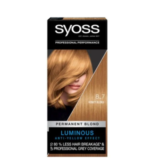 САЙЪС БОЯ ЗА КОСА 8-7 е дълготрайна боя за коса със система против увреждане на косъма за ярък и жизнен цвят с дълготрайна интензивност. Иновативната формула съдържа концентрирани цветни пигментни, които проникват дълбоко във фибрите на косъма за професионален цветови резултат и до 100% покритие на белите коси. Професионалната система против увреждане във формулата комбинира SalonPlex технология и кератин. SalonPlex технологията възстановява разрушените връзки в косъма и го заздравява отвътре. Кератинът покрива кутикула на косъма, за да направи повърхността му по-гладка и здрава. Дерматологично тестван продукт.