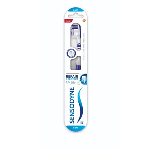 СЕНСОДИН ЧЕТКА ЗА ЗЪБИ REPAIR&PROTECT СОФТ е четка създадена за хора с чувствителни зъби. Тя деликатно почиства и защитава зъбите. Има влакна, които се огъват при контакт със зъбите и венците и помагат за осигуряването на нежно почистване. Заострените влакна по външната част на четката правят мекия край още по-гъвкав и осигуряват защита срещу прекомерното четкане.