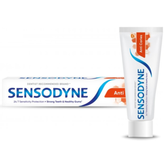 СЕНСОДИН ПАСТА ЗА ЗЪБИ АНТИ КАРИЕС 75МЛ е паста за зъби с комплексно действие. Тя защита от чувствителност на зъбите, предпазва от кариес, премахва плаката и освежава дъха. Предлага се в опаковка от 75мл.