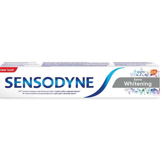 Пастата за зъби Extra Whitening от Sensodyne е с ново усъвършенствано избелващо действие. Новата технология е подобрена и осигурява по-добро премахване на петната, без пастата за зъби да е по-абразивна.