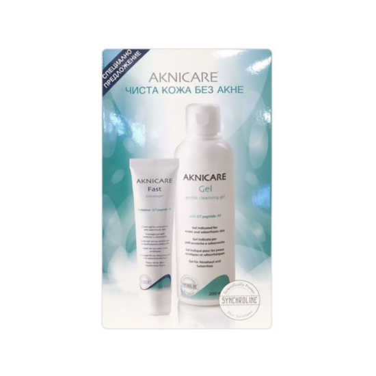 Synchroline Aknicare Gentle Cleansing Gelпредставлява нежен почистващ гел, предназначен за мазна кожа, който отстранява излишния себум, спомага за лекуването на акнето и предотвратява повторната му поява. При нанасяне на гела се образува лека пяна. Продукта се препоръчва за третиране на мазна и чувствителна кожа, склонна към омазняване и образуване на акне. След употребата на гела, кожата е чиста, свежа и защитена. Серията Aknicare е медицинска и е създадена за терапия и предпазване от нова поява на акне. Патентованата комбинация от triethyl citrate и ethyl linoleate модифицира средата на пилосебацейните единици, и притежава сравнима ефикасност с локалните ретиноиди и антибиотици за редуциране на броя на комедоните, папулите и пустулите при акне.