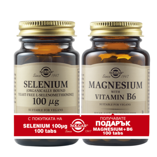 СОЛГАР СЕЛЕН 100МКГ X 100ТАБЛ + СОЛГАР МАГНЕЗИЙ С ВИТАМИН В6 ТАБЛ. Х 100 / SOLGAR MAGNESIUM WITH B6 TABL X 100
