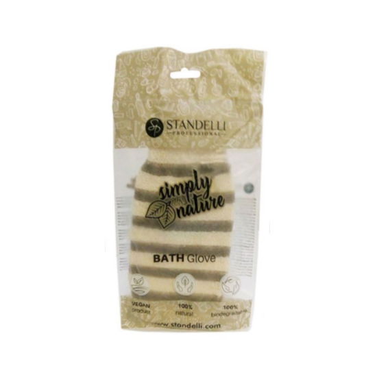 СТАНДЕЛИ 0780423 РЪКАВИЦА ЗА БАНЯ ПАМУК И ЛЕН - ефективно изравнява релефа, стимулира кръвообращението и лимфния поток, изработена от мека материя и е подходяща за грижа за кожата на лицето и тялото. STANDELLI Ви мотивира да станете по-здрави и красиви, като използвате продукти, които незабавно придават на кожата си перфектния вид. Почистващата ръкавица ексфолира старателно кожата, роговия слой и изравнява микрорелефа и тонуса. 100% натурален, биоразградим и веган продукт. Осигурява по-добро усвояване на козметичните препарати и оформя фигурата.