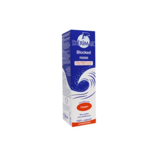 СТЕРИМАР ХИПЕРТОНИК ЗАПУШЕН НОС е препоръчван за употреба при хрема, ринити, остри или хронични синузити. Съдържа хипертоничен разтвор на морска вода (по-висока концентрация на сол от тази в нашия организъм).