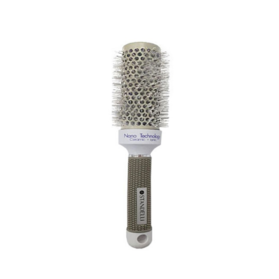 СТАНДЕЛИ 780347 ЧЕТКА ЗА КОСА NANO TEHNOLOGI 43ММ придава обем и улеснява изправянето, разресването и изсушаването на кичурите. Кръглата четка за сушене със сешоар осигурява блясък и възпрепятства наелектризирането. Покритието върху основата позволява по-бързо, равномерно и дълготрайно нагряване, което съкращава продължителността на изсушаване. Предотвратява накъсването на косата, без да променя структурата ѝ. С изключително удобна дръжка и топлоустойчива основа. Зъбците са локализирани така, че косата да е в оптимална позиция, което гарантира дълготраен ефект на прическата.