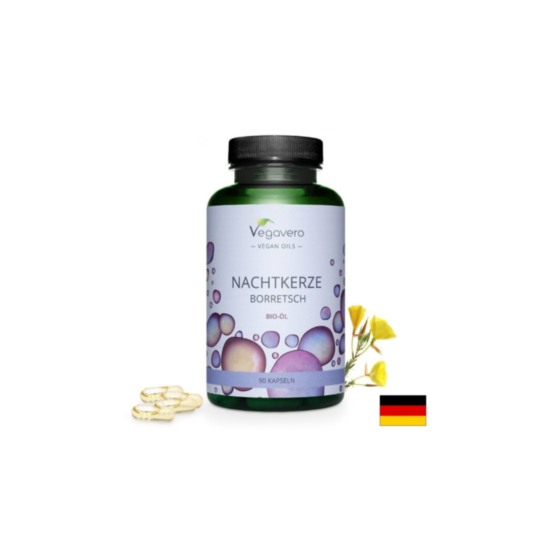 Nachtkerze Borretsch BIO-Öl на немската компания Vegavero е 100% веган продукт, който не съдържа изкуствени добавки и ГМО. Произведен е според световни стандарти: ISO 9001, HACCP, GMP.