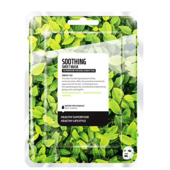 SUPERFOOD УСПОКОЯВАЩА ШИЙТ МАСКА СЪС ЗЕЛЕН ЧАЙ - Това е маска за лице, която е идеална, ако трябва бързо да съживите уморената кожа със зачервяване и да й придадете здрав блясък за целия ден.
