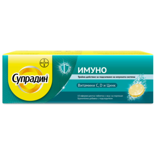 Супрадин Имуно Витамин С, Витамин D и Цинк при настинка и грип за засилване на имунната система x 10 ефервесцентни таблетки Bayer