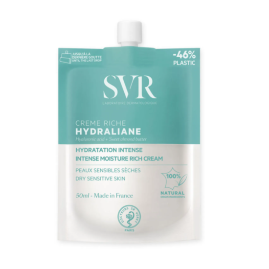 СВР ХИДРАЛИАН КРЕМ ЗА ЛИЦЕ БОГАТ 50МЛ интензивен хидратиращ крем за лице. Извлича се от термалните извори Plateau de Langres във френския регион Cote d'Or, Франция, 100% физиологично изотоничен, той се пречиства чрез изключително фини системи за филтриране, за да стане 100 пъти по-концентриран в основни микроелементи, за да се адаптира специално към кожните клетки.