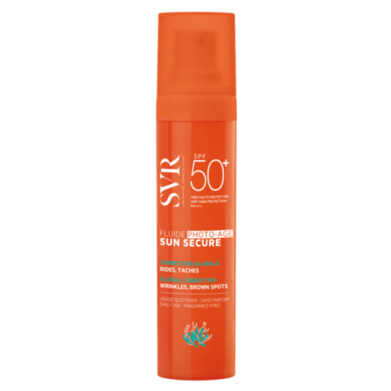 SUN SECURE FLUIDE PHOTO-AGE SPF 50+ 40 мл e слънцезащитен флуид против фотостареене. Иновативна широкоспектърна защита с 4 фотостабилни филтъра, подбрани в оптимално съотношение за висока UVA/UVB защита.