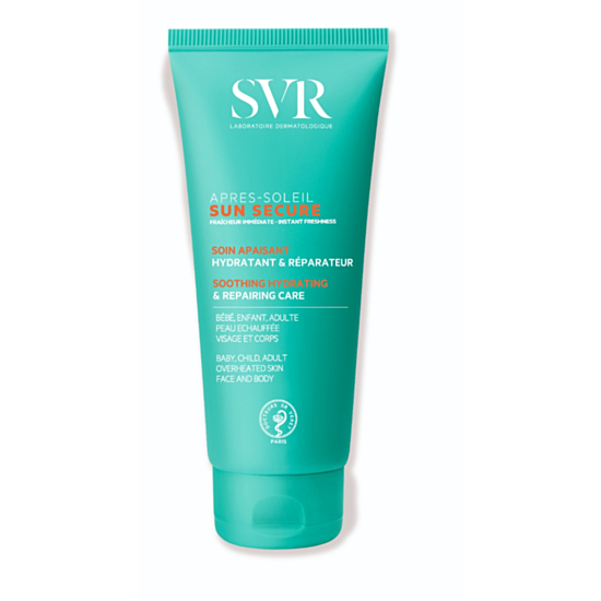 Мляко за след слънце, подходящо за цялото семейство и всеки тип кожа. Продуктът успокоява, хидратира и възстановява кожата след излагане на слънце. СВР Сън Секюр Мляко за след слънце е сензорен продукт, който рехидратира и успокоява усещането за прегряване. Специалната формула с Ниацинамид и кокосово масло оставя кожата мека и подобрява тена. Млякото има кремообразна текстура, която е лесна за нанасяне и се абсорбира бързо. С приятен летен аромат. Без парабени. Дерматологично тестван продукт. Некомедогенен.
