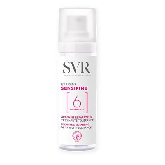 SVR Sensifine e успокояващ и възстановяващ крем за полиалергична и нетолерантна кожа. Кожата с висока чувствителност и полиалергичен профил изисква минималистичен състав и максимална поносимост. Този продукт съдържа само 6 дерматологично подбрани съставки, съвместими с физиологията на кожата. Успокоява и хидратира до 8 часа, възстановява кожната бариера. Текстура е свежа, немазна и ултратолерантна. 97% от съставките са от естествен произход.