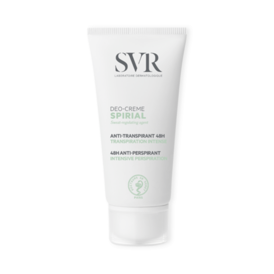 Spirial crème е крем против изпотяване за длани, ходила, подмишници, лице и локализирани зони. Благодарение на алуминиевите соли продуктът ограничава прекомерното потоотделяне без да запушва жлезите. Spirial crème е подходящ и за мъже, и за жени, тъй като е безароматен. Не оставя бели петна.