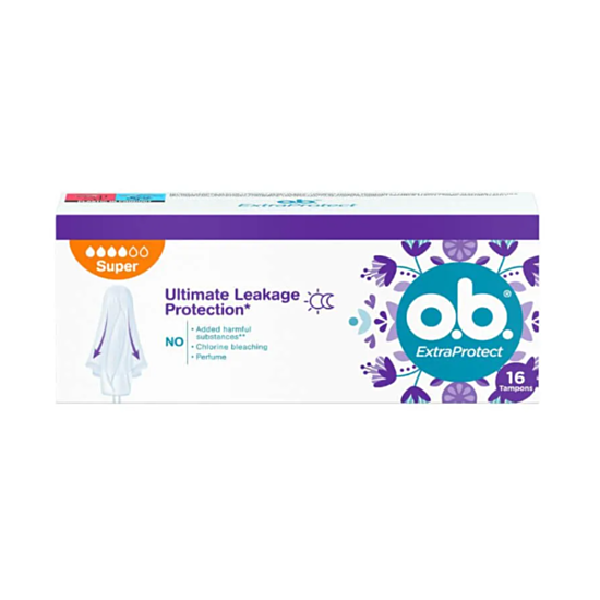 O.B Extra Protect Super имат допълнителни защитни крилца и технология Dynamic Fit, които осигуряват 100% защита срещу протичане, за да се чувстване сигурни и защитени през деня и нощта. Намалява риска от протичане, защитава по-дълго време, за чисто и свежо усещане. О.Б. Екстра Протект Супер Тампони ви осигурят усещане за удобство и увереност, благодарение на което ще забравите коя част от месеца е.