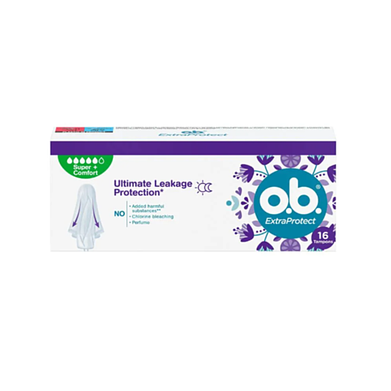 O.B Extra Protect Super+ Comfort имат допълнителни защитни крилца и технология Dynamic Fit, които осигуряват 100% защита срещу протичане, за да се чувстване сигурни и защитени през деня и нощта. Намалява риска от протичане, защитава по-дълго време, за чисто и свежо усещане. О.Б. Екстра Протект Супер+ Комфорт Тампони ви осигурят усещане за удобство и увереност, благодарение на което ще забравите коя част от месеца е.