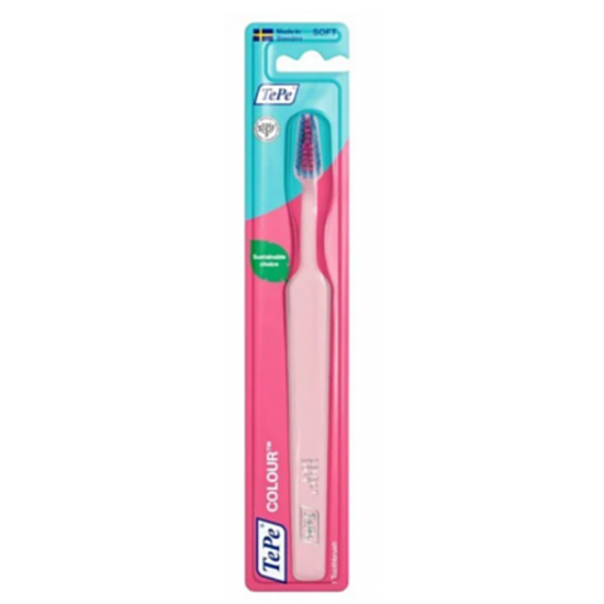 ТЕПЕ ЧЕТКА ЗА ЗЪБИ СЕЛЕКТ КОЛОР СОФТ РОЗОВА БЛИСТЕР А е четка за зъби за ефективно и нежно отстраняване на плаката. Тя е разработена в сътрудничество с дентални експерти. Четката разполага с малка изтънена глава за максимален достъп до по-задните зъби, а крайните заоблени и изключително меки влакна осигуряват нежно почистване. Шията на четката може да се огъва - загрявате с гореща вода и огъвате до желания ъгъл.