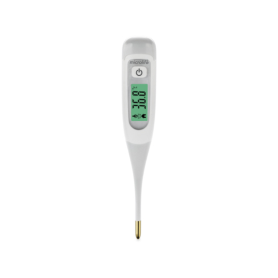 Microlife MT 850 е водоустойчив термометър с хипоалергенен златен връх, който измерва температурата за 8 секунди. Microlife MT 850 е мултифункционален – измерва температурата на тялото, на водата във ваната на околната среда. Комфортно и бързо измерване. Термометърът има гъвкав връх, който е покрит със злато – идеален за хора с чувствителност към никела. Microlife MT 850 показва последното измерване при включване. Има автоматично изключване и индикатор за изтощена батерия. Уредът се самоизключва. Цветна и звукова сигнализация при висока температура.