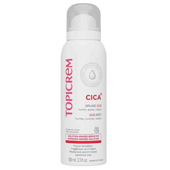 Спреят за лице и тяло Cica+ SOS на Topicrem съчетава успокояваща и възстановяваща ефикасност с нежни към кожата свойства в една стъпка. Благодарение на патентования си йонизиран разтвор с минерални соли, той успокоява раздразненията, почиства, пречиства и насърчава епидермалното възстановяване.