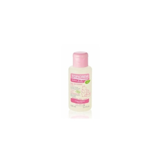 Topicrem Soins bebe Cleansing gel 2 in 1 е нежен почистващ гел, предназначен за ежедневна хигиена при новородени, бебета и деца. Продуктът се отличава с формула, базирана изцяло върху най-ценните качества на естествени съставки с биопроизход.Topicrem Cleansing gel 2 in 1 възстановява и укрепва естествената защитна функция на кожата и предпазва естествения хидролипиден слой от изсушаване под въздействието на външни влияния.