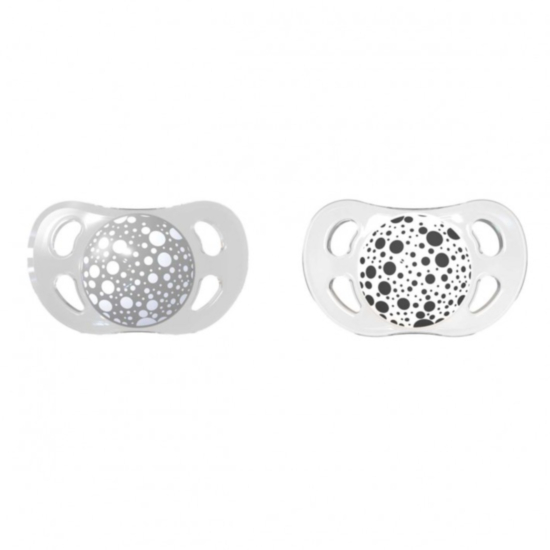 Подходящa за бебета над 6 месеца. Проектирана е с 4 големи въздушни отвора, които пропускат достатъчно въздух и позволяват на кожата да диша. Изработена от мек силикон, с ортодонтска форма, която допринася за правилното развитие на зъбите.