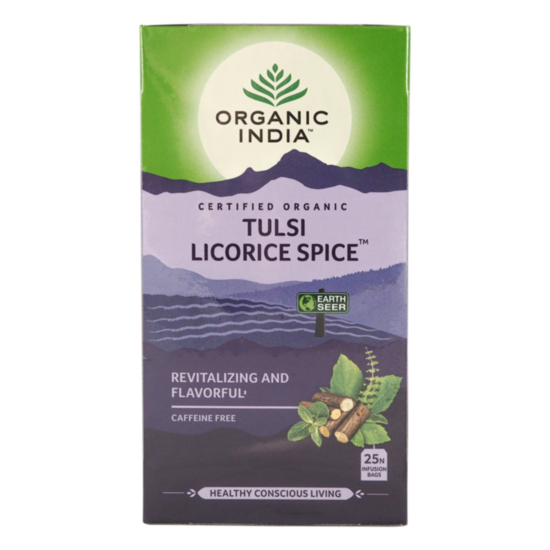 В тази уникална смес трите вида Тулси са преплетени със сладък корен (сладник) и ароматите на добавените джинджифил, канела, лимонова трева.
