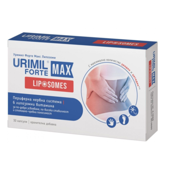 Хранителната добавка Уримил Форте Макс Липозоми от Naturpharma е специално разработена формула за подпомагане на нормалното функциониране на периферната нервна система и мускулната функция. Продуктът съдържа оптимална комбинация от 9 активни съставки с високи концентрации на уридин и цитидин, както и 6 липозомни витамина и магнезий. Благодарение на липозомната технология се осигурява по-добро усвояване, бионаличност и поносимост, като активните съставки се предпазват от разграждане в стомашно-чревния тракт.