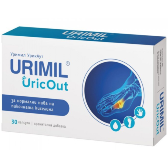 Уримил УрикАут е синергична формула за нормални нива на пикочна киселина – отпаден продукт, чието прекомерно натрупване в организма е причина за подагра. В нея са прецизно съчетани и дозирани 8 активни съставки с доказано влияние върху метаболитните процеси и хормоналната дейност.