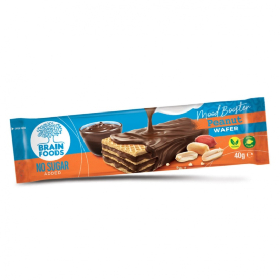Насладете се на великолепна веган вафла с фъстъци и вкус на млечен шоколад, без добавена захар. Brain Foods Вафла с фъстъци не съдържа животински продукти и има високо съдържание на фибри. Вафлата съдържа под 1 грам захар и има малко калории.