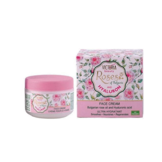 ВБ 77294 РОЗА И ХИАЛУРОН КРЕМ ЗА ЛИЦЕ ДНЕВЕН 50МЛ - Изключително нежен и ароматен, кремът с розово масло и хиалуронова киселина е подходящ за всеки тип кожа, като особено полезен е за суха и чувствителна. Хидратира в дълбочина, регенерира клетките и успокоява кожата. Възстановява еластичността, подхранва и заличава бръчките. Подходящ е за ежедневна употреба.
