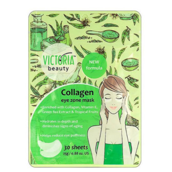 ВБ МАСКА ЗА ОЧИ С КОЛАГЕН 30 БР. Маската с колаген за зоната около очите Victoria Beauty е специално разработена за грижа за нежната зона около очите. Маската въздейства на кожата, като я хидратира в дълбочина, правейки я сияйна и свежа на вид, освен това намалява признаците на стареене, благодарение на формулата богата на активни съставки.