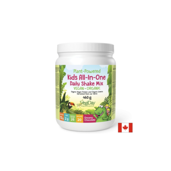 Kids All-In-One Daily Shake Mix Organic Vegan Protein and Organic Greens на канадската компания Natural Factors е вкусен, сертифициран продукт специално създаден за постигане и поддържане на оптимално здраве при децата.